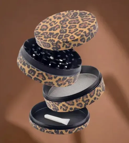 Dale un toque salvaje a tu kit con este moledor de 4 capas , diseñado con estampado animal .