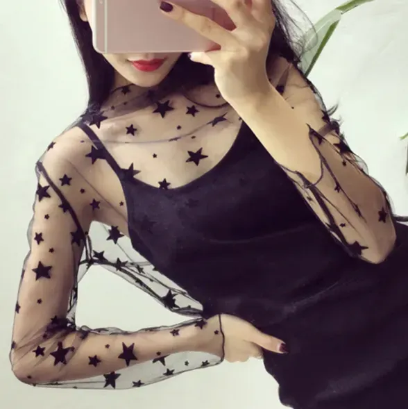 POLERA DE MALLA TRANSPARENTE CON DISEÑO ESTRELLAS