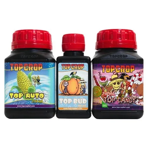 Este pack consta de tres productos, con el que aportar a las plantas todo el alimento que necesitan para un correcto desarrollo obteniendo un gran rendimiento, ya que todos los nutrientes que aporta Top Crop son orgánicos. Contiene: